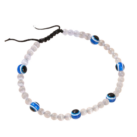 NATURAL WHITE CAT’S EYE BRACELET - 4+6+8MM LUCKY PROTECTION STONE