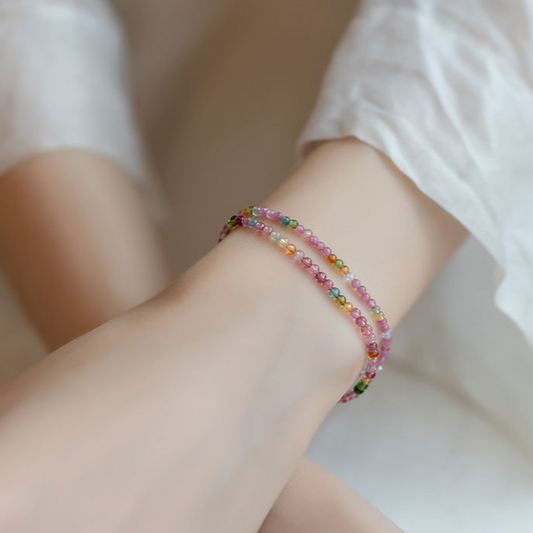 2mm Ultra-Fine Rainbow Tourmaline Elastic Bracelet - 17cm Lightweight Jewelry