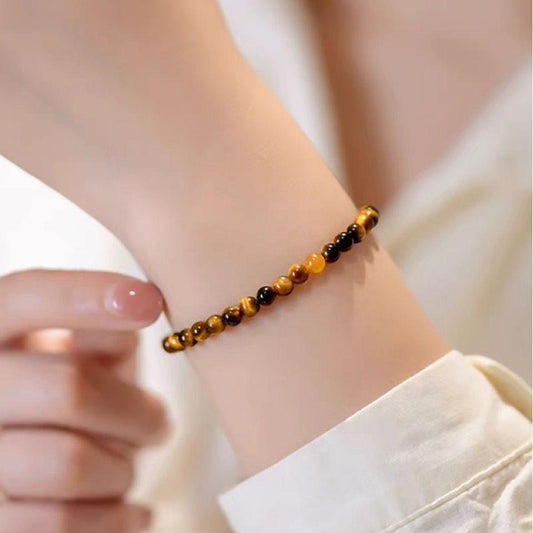 4mm Natural Tiger's Eye Bracelet - Unisex Retro Energy Jewelry